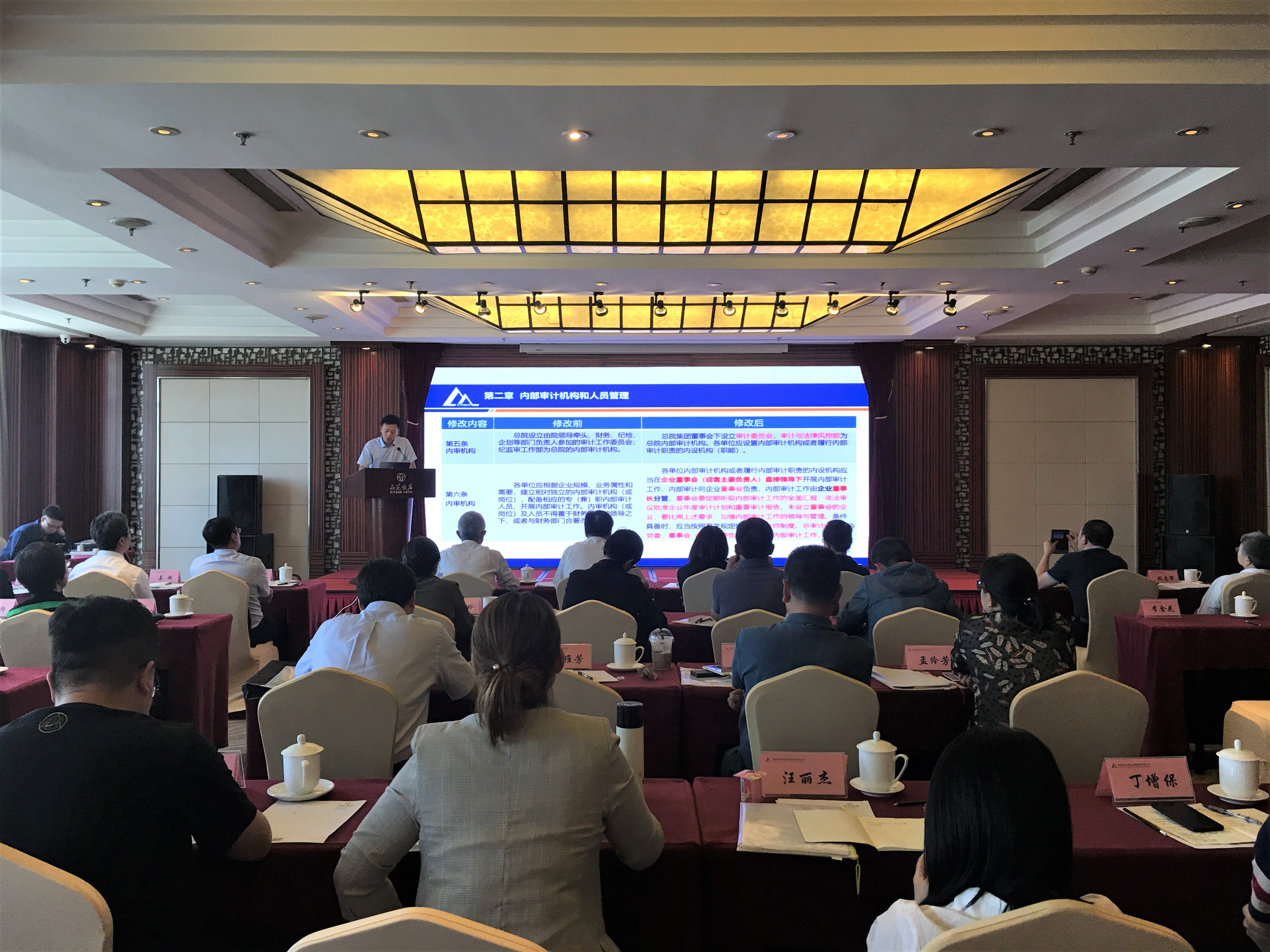 5月23日下午,機械總院集團審計與法律風控部召開集團2019年度內部審計工作會議。集團黨委委員、總會計師、總法律顧問李連清,哈焊院黨委副書記儲繼君,哈焊院總會計師易娜,沈鑄所紀委書記蘇仕方,鄭機所總會計師姚秋蓮,中機一院紀委書記劉志軍,中機認檢總會計師魏永斌以及各單位審計負責人、財務負責人共計44人參加此次會議。會議由集團審計與法律風控部常務副部長白國林主持。