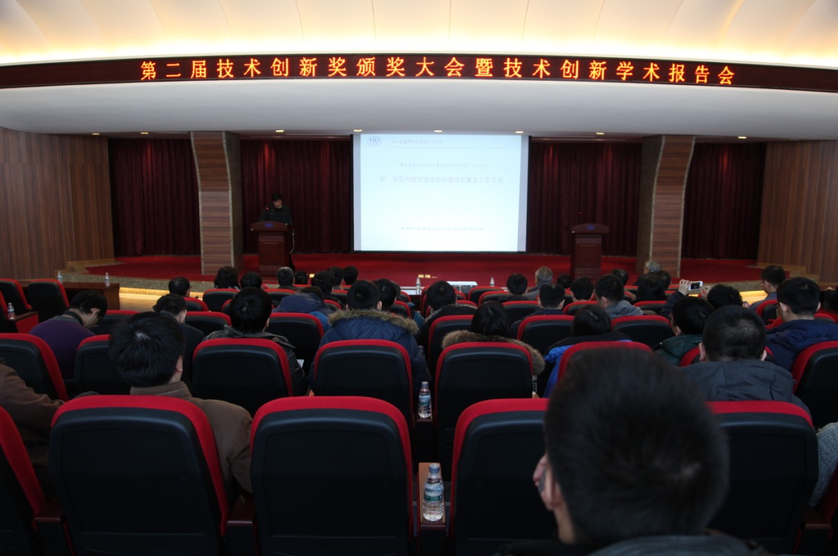頒獎大會上,黨委書記楊玉亭宣讀了哈爾濱焊接研究所第二屆技術創新獎獎勵的決定,林尚揚院士親自向成果獎獲、成果應用獎和科技論文獎獲得者頒發證書和獎金。本次獲獎項目涵蓋了材料、設備、工藝三個焊接技術領域,優秀科技論文獎獲得者王威的獲獎題目是:激光-脈沖GMAW電弧復合焊接的雙重導電機制;科技成果獎獲得者于丹的獲獎題目是:90°彎管內壁耐蝕層自動堆焊裝置及工藝方法;科技成果應用獎獲得者焊條焊劑事業部的獲獎題目是:煤化工重型壓力容器主焊縫系列焊接材料國產化。