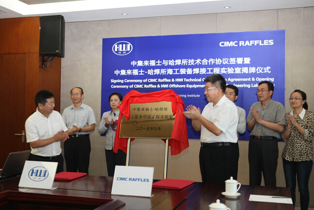 參觀后,雙方進(jìn)行了深入的交流洽談,針對煙臺(tái)中集來福士的技術(shù)亟需,雙方經(jīng)篩選初步擬定了兩個(gè)第一期合作課題,確定項(xiàng)目組成員編寫計(jì)劃任務(wù)書,計(jì)劃組織申報(bào)省市科技攻關(guān)項(xiàng)目。隨后舉行了煙臺(tái)中集來福士海洋工程有限公司與哈爾濱焊接研究所共建的