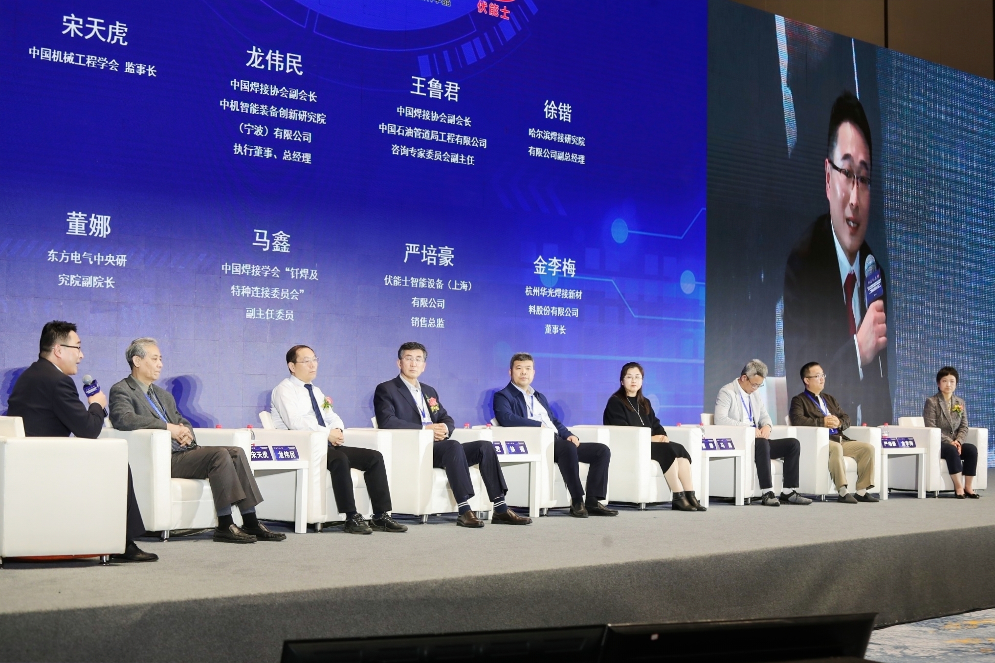 隨后開展了沙發論壇,中國機械工程學會監事長宋天虎,中國焊接協會副會長、中機智能裝備創新研究院(寧波)有限公司執行董事、總經理龍偉民,中國焊接協會副會長、中國石油管道局工程有限公司咨詢專家委員會副主任王魯君,哈爾濱焊接研究院有限公司副總經理徐鍇,中國東方電氣集團有限公司東方電氣中央研究院副院長董娜,中國焊接學會釬焊及特種連接委員會副主任委員馬鑫,伏能士智能設備(上海)有限公司銷售總監嚴培豪,杭州華光焊接新材料股份有限公司董事長金李梅作為嘉賓參加了沙發論壇。各位嘉賓與主持人圍繞本次論壇主題“減碳 高端 合作 共贏”,就焊接行業發展熱點和會員單位關注的問題進行了熱烈討論。為行業發展提供了新建議和新思路。